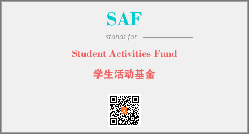 英文缩略词“SAF”经常作为“Student Activities Fund”的英文缩写来使用,中文表示:“学生活动基金”。本文将详细介绍英文缩写词SAF所代表英文单词,其对应的中文拼音、详细解释以及在英语中的流行度。此外,还有关于缩略词SAF的分类、应用领域及相关应用示例等。