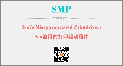 以上为Sco\'s Misappropriated Printdrivers英文缩略词SMP的中文解释,以及该英文缩写在英语的流行度、分类和应用领域方面的信息。
