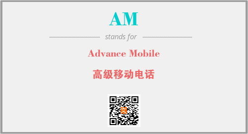 上述内容是“Advance Mobile”作为“AM”的缩写,解释为“高级移动电话”时的信息,以及英文缩略词AM所代表的英文单词,其对应的中文拼音、详细解释以及在英文中的流行度和相关分类、应用领域及应用示例等。