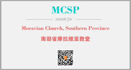 英文缩略词“MCSP”经常作为“Moravian Church, Southern Province”的英文缩写来使用,中文表示:“南部省摩拉维亚教堂”。本文将详细介绍英文缩写词MCSP所代表英文单词,其对应的中文拼音、详细解释以及在英语中的流行度。此外,还有关于缩略词MCSP的分类、应用领域及相关应用示例等。