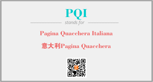 英文缩略词“PQI”经常作为“Pagina Quacchera Italiana”的英文缩写来使用,中文表示:“意大利Pagina Quacchera”。本文将详细介绍英文缩写词PQI所代表英文单词,其对应的中文拼音、详细解释以及在英语中的流行度。此外,还有关于缩略词PQI的分类、应用领域及相关应用示例等。