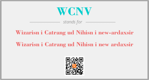 英文缩略词“WCNV”经常作为“Wizarisn i Catrang ud Nihisn i new-ardaxsir”的英文缩写来使用,中文表示:“Wizarisn i Catrang ud Nihisn i new ardaxsir”。本文将详细介绍英文缩写词WCNV所代表英文单词,其对应的中文拼音、详细解释以及在英语中的流行度。此外,还有关于缩略词WCNV的分类、应用领域及相关应用示例等。