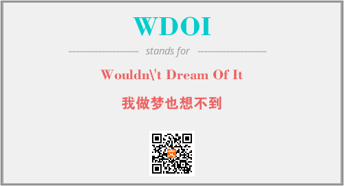 以上为Wouldn\'t Dream Of It英文缩略词WDOI的中文解释,以及该英文缩写在英语的流行度、分类和应用领域方面的信息。