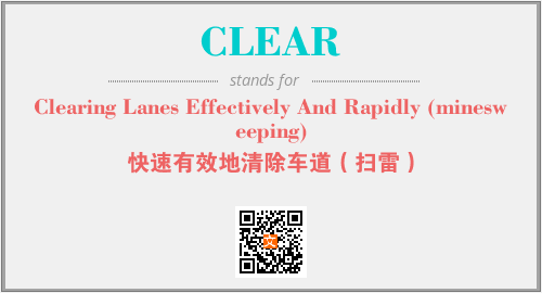 以上为Clearing Lanes Effectively And Rapidly (minesweeping)英文缩略词CLEAR的中文解释,以及该英文缩写在英语的流行度、分类和应用领域方面的信息。