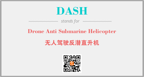 上述内容是“Drone Anti Submarine Helicopter”作为“DASH”的缩写,解释为“无人驾驶反潜直升机”时的信息,以及英文缩略词DASH所代表的英文单词,其对应的中文拼音、详细解释以及在英文中的流行度和相关分类、应用领域及应用示例等。