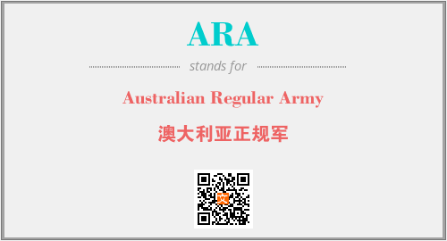 英文缩略词“ARA”经常作为“Australian Regular Army”的英文缩写来使用,中文表示:“澳大利亚正规军”。本文将详细介绍英文缩写词ARA所代表英文单词,其对应的中文拼音、详细解释以及在英语中的流行度。此外,还有关于缩略词ARA的分类、应用领域及相关应用示例等。