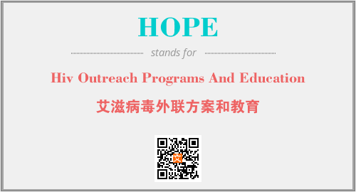 以上为Hiv Outreach Programs And Education英文缩略词HOPE的中文解释,以及该英文缩写在英语的流行度、分类和应用领域方面的信息。