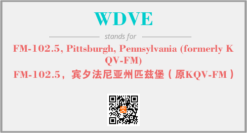 上述内容是“FM-102.5, Pittsburgh, Pennsylvania (formerly KQV-FM)”作为“WDVE”的缩写,解释为“FM-102.5,宾夕法尼亚州匹兹堡(原KQV-FM)”时的信息,以及英文缩略词WDVE所代表的英文单词,其对应的中文拼音、详细解释以及在英文中的流行度和相关分类、应用领域及应用示例等。