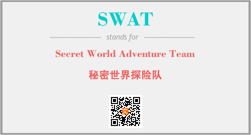 以上为Secret World Adventure Team英文缩略词SWAT的中文解释,以及该英文缩写在英语的流行度、分类和应用领域方面的信息。