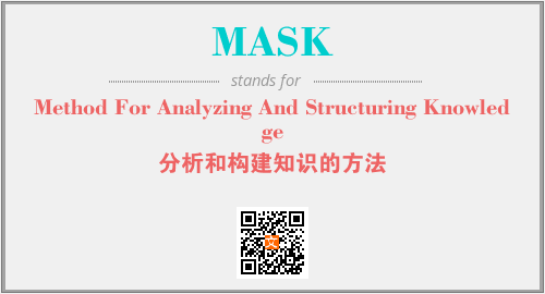 上述内容是“Method For Analyzing And Structuring Knowledge”作为“MASK”的缩写,解释为“分析和构建知识的方法”时的信息,以及英文缩略词MASK所代表的英文单词,其对应的中文拼音、详细解释以及在英文中的流行度和相关分类、应用领域及应用示例等。