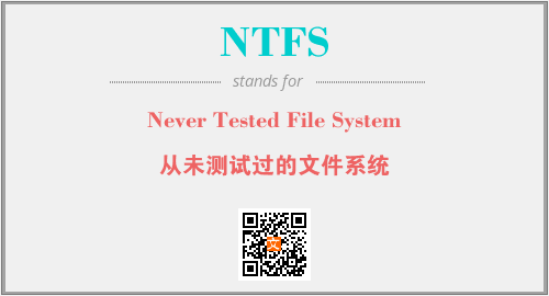 英文缩略词“NTFS”经常作为“Never Tested File System”的英文缩写来使用,中文表示:“从未测试过的文件系统”。本文将详细介绍英文缩写词NTFS所代表英文单词,其对应的中文拼音、详细解释以及在英语中的流行度。此外,还有关于缩略词NTFS的分类、应用领域及相关应用示例等。
