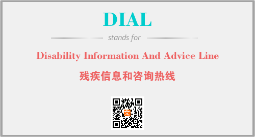 上述内容是“Disability Information And Advice Line”作为“DIAL”的缩写,解释为“残疾信息和咨询热线”时的信息,以及英文缩略词DIAL所代表的英文单词,其对应的中文拼音、详细解释以及在英文中的流行度和相关分类、应用领域及应用示例等。