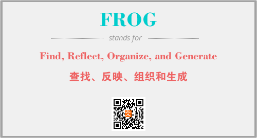 上述内容是“Find, Reflect, Organize, and Generate”作为“FROG”的缩写,解释为“查找、反映、组织和生成”时的信息,以及英文缩略词FROG所代表的英文单词,其对应的中文拼音、详细解释以及在英文中的流行度和相关分类、应用领域及应用示例等。