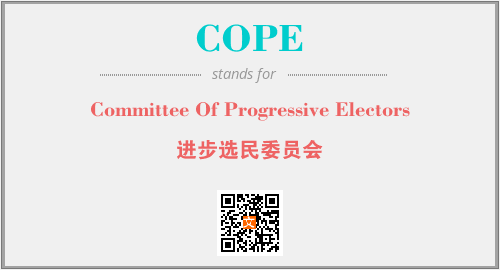 上述内容是“Committee Of Progressive Electors”作为“COPE”的缩写,解释为“进步选民委员会”时的信息,以及英文缩略词COPE所代表的英文单词,其对应的中文拼音、详细解释以及在英文中的流行度和相关分类、应用领域及应用示例等。