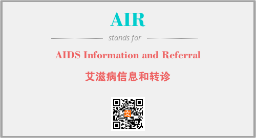 上述内容是“AIDS Information and Referral”作为“AIR”的缩写,解释为“艾滋病信息和转诊”时的信息,以及英文缩略词AIR所代表的英文单词,其对应的中文拼音、详细解释以及在英文中的流行度和相关分类、应用领域及应用示例等。