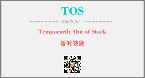 上述内容是“Temporarily Out of Stock”作为“TOS”的缩写,解释为“暂时缺货”时的信息,以及英文缩略词TOS所代表的英文单词,其对应的中文拼音、详细解释以及在英文中的流行度和相关分类、应用领域及应用示例等。