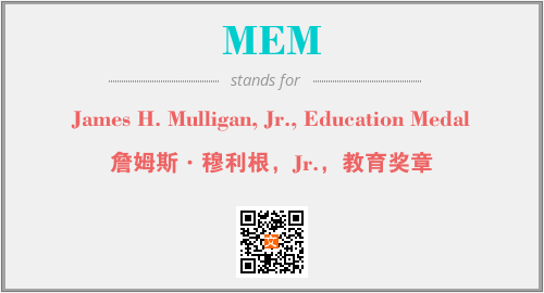 上述内容是“James H. Mulligan, Jr., Education Medal”作为“MEM”的缩写,解释为“詹姆斯·穆利根,Jr.,教育奖章”时的信息,以及英文缩略词MEM所代表的英文单词,其对应的中文拼音、详细解释以及在英文中的流行度和相关分类、应用领域及应用示例等。