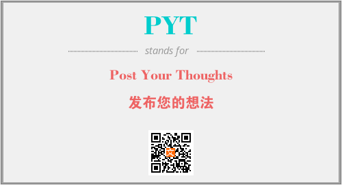 以上为Post Your Thoughts英文缩略词PYT的中文解释,以及该英文缩写在英语的流行度、分类和应用领域方面的信息。