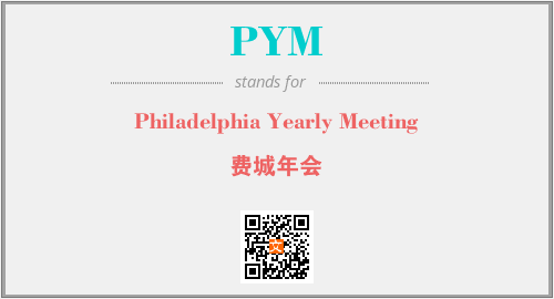 英文缩略词“PYM”经常作为“Philadelphia Yearly Meeting”的英文缩写来使用,中文表示:“费城年会”。本文将详细介绍英文缩写词PYM所代表英文单词,其对应的中文拼音、详细解释以及在英语中的流行度。此外,还有关于缩略词PYM的分类、应用领域及相关应用示例等。