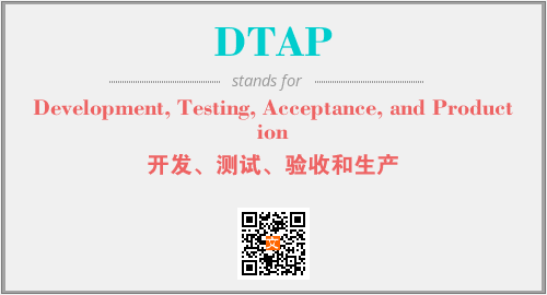 英文缩略词“DTAP”经常作为“Development, Testing, Acceptance, and Production”的英文缩写来使用,中文表示:“开发、测试、验收和生产”。本文将详细介绍英文缩写词DTAP所代表英文单词,其对应的中文拼音、详细解释以及在英语中的流行度。此外,还有关于缩略词DTAP的分类、应用领域及相关应用示例等。