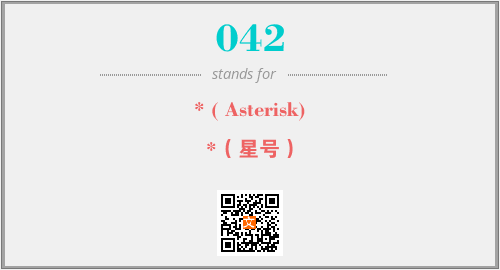 上述内容是“* ( Asterisk)”作为“042”的缩写,解释为“*(星号)”时的信息,以及英文缩略词042所代表的英文单词,其对应的中文拼音、详细解释以及在英文中的流行度和相关分类、应用领域及应用示例等。