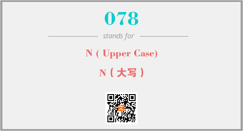 上述内容是“N ( Upper Case)”作为“078”的缩写,解释为“N(大写)”时的信息,以及英文缩略词078所代表的英文单词,其对应的中文拼音、详细解释以及在英文中的流行度和相关分类、应用领域及应用示例等。