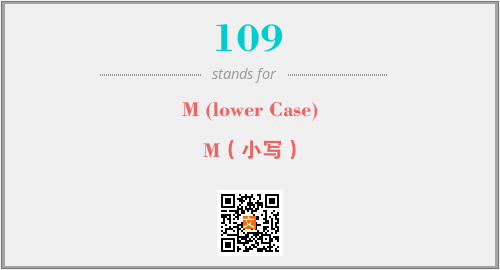 上述内容是“M (lower Case)”作为“109”的缩写,解释为“M(小写)”时的信息,以及英文缩略词109所代表的英文单词,其对应的中文拼音、详细解释以及在英文中的流行度和相关分类、应用领域及应用示例等。