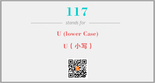 上述内容是“U (lower Case)”作为“117”的缩写,解释为“U(小写)”时的信息,以及英文缩略词117所代表的英文单词,其对应的中文拼音、详细解释以及在英文中的流行度和相关分类、应用领域及应用示例等。