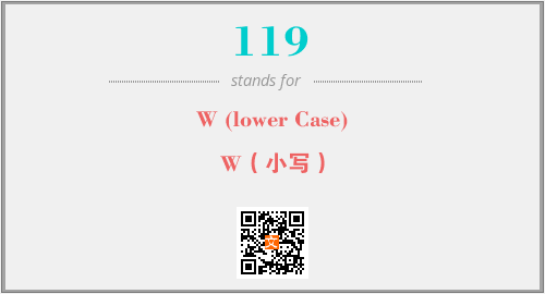 上述内容是“W (lower Case)”作为“119”的缩写,解释为“W(小写)”时的信息,以及英文缩略词119所代表的英文单词,其对应的中文拼音、详细解释以及在英文中的流行度和相关分类、应用领域及应用示例等。