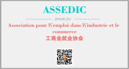 英文缩略词“ASSEDIC”经常作为“Association pour l\'emploi dans l\'industrie et le commerce”的英文缩写来使用,中文表示:“工商业就业协会”。本文将详细介绍英文缩写词ASSEDIC所代表英文单词,其对应的中文拼音、详细解释以及在英语中的流行度。此外,还有关于缩略词ASSEDIC的分类、应用领域及相关应用示例等。