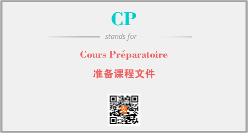以上为Cours Préparatoire英文缩略词CP的中文解释,以及该英文缩写在英语的流行度、分类和应用领域方面的信息。