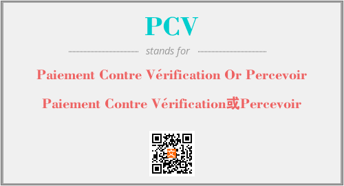 以上为Paiement Contre Vérification Or Percevoir英文缩略词PCV的中文解释,以及该英文缩写在英语的流行度、分类和应用领域方面的信息。