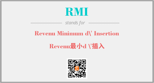 英文缩略词“RMI”经常作为“Revenu Minimum d\' Insertion”的英文缩写来使用,中文表示:“Revenu最小d \'插入”。本文将详细介绍英文缩写词RMI所代表英文单词,其对应的中文拼音、详细解释以及在英语中的流行度。此外,还有关于缩略词RMI的分类、应用领域及相关应用示例等。