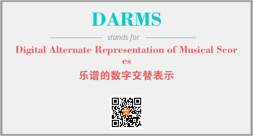 上述内容是“Digital Alternate Representation of Musical Scores”作为“DARMS”的缩写,解释为“乐谱的数字交替表示”时的信息,以及英文缩略词DARMS所代表的英文单词,其对应的中文拼音、详细解释以及在英文中的流行度和相关分类、应用领域及应用示例等。