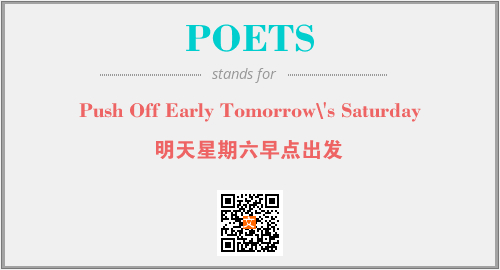 以上为Push Off Early Tomorrow\'s Saturday英文缩略词POETS的中文解释,以及该英文缩写在英语的流行度、分类和应用领域方面的信息。