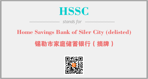 英文缩略词“HSSC”经常作为“Home Savings Bank of Siler City (delisted)”的英文缩写来使用,中文表示:“锡勒市家庭储蓄银行(摘牌)”。本文将详细介绍英文缩写词HSSC所代表英文单词,其对应的中文拼音、详细解释以及在英语中的流行度。此外,还有关于缩略词HSSC的分类、应用领域及相关应用示例等。