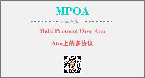 上述内容是“Multi Protocol Over Atm”作为“MPOA”的缩写,解释为“Atm上的多协议”时的信息,以及英文缩略词MPOA所代表的英文单词,其对应的中文拼音、详细解释以及在英文中的流行度和相关分类、应用领域及应用示例等。