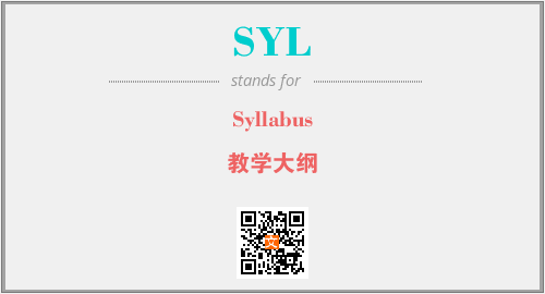英文缩略词“SYL”经常作为“Syllabus”的英文缩写来使用,中文表示:“教学大纲”。本文将详细介绍英文缩写词SYL所代表英文单词,其对应的中文拼音、详细解释以及在英语中的流行度。此外,还有关于缩略词SYL的分类、应用领域及相关应用示例等。