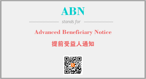 英文缩略词“ABN”经常作为“Advanced Beneficiary Notice”的英文缩写来使用,中文表示:“提前受益人通知”。本文将详细介绍英文缩写词ABN所代表英文单词,其对应的中文拼音、详细解释以及在英语中的流行度。此外,还有关于缩略词ABN的分类、应用领域及相关应用示例等。