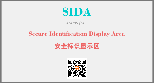 上述内容是“Secure Identification Display Area”作为“SIDA”的缩写,解释为“安全标识显示区”时的信息,以及英文缩略词SIDA所代表的英文单词,其对应的中文拼音、详细解释以及在英文中的流行度和相关分类、应用领域及应用示例等。