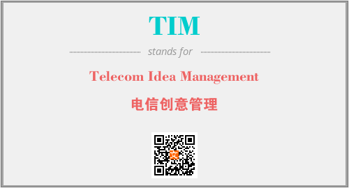 英文缩略词“TIM”经常作为“Telecom Idea Management”的英文缩写来使用,中文表示:“电信创意管理”。本文将详细介绍英文缩写词TIM所代表英文单词,其对应的中文拼音、详细解释以及在英语中的流行度。此外,还有关于缩略词TIM的分类、应用领域及相关应用示例等。