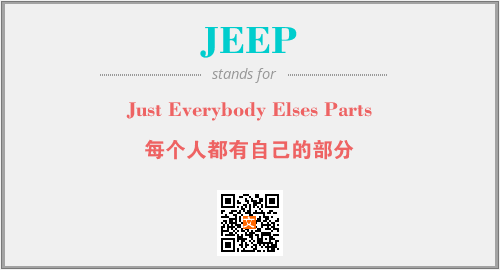 英文缩略词“JEEP”经常作为“Just Everybody Elses Parts”的英文缩写来使用,中文表示:“每个人都有自己的部分”。本文将详细介绍英文缩写词JEEP所代表英文单词,其对应的中文拼音、详细解释以及在英语中的流行度。此外,还有关于缩略词JEEP的分类、应用领域及相关应用示例等。