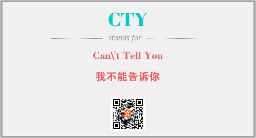 英文缩略词“CTY”经常作为“Can\'t Tell You”的英文缩写来使用,中文表示:“我不能告诉你”。本文将详细介绍英文缩写词CTY所代表英文单词,其对应的中文拼音、详细解释以及在英语中的流行度。此外,还有关于缩略词CTY的分类、应用领域及相关应用示例等。