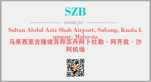 上述内容是“Sultan Abdul Aziz Shah Airport, Subang, Kuala Lumpur, Malaysia”作为“SZB”的缩写,解释为“马来西亚吉隆坡苏邦苏丹阿卜杜勒·阿齐兹·沙阿机场”时的信息,以及英文缩略词SZB所代表的英文单词,其对应的中文拼音、详细解释以及在英文中的流行度和相关分类、应用领域及应用示例等。