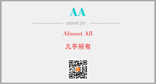 英文缩略词“AA”经常作为“Almost All”的英文缩写来使用,中文表示:“几乎所有”。本文将详细介绍英文缩写词AA所代表英文单词,其对应的中文拼音、详细解释以及在英语中的流行度。此外,还有关于缩略词AA的分类、应用领域及相关应用示例等。