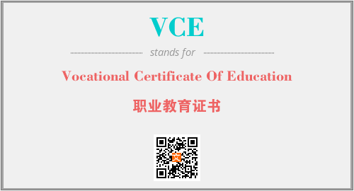 英文缩略词“VCE”经常作为“Vocational Certificate Of Education”的英文缩写来使用,中文表示:“职业教育证书”。本文将详细介绍英文缩写词VCE所代表英文单词,其对应的中文拼音、详细解释以及在英语中的流行度。此外,还有关于缩略词VCE的分类、应用领域及相关应用示例等。