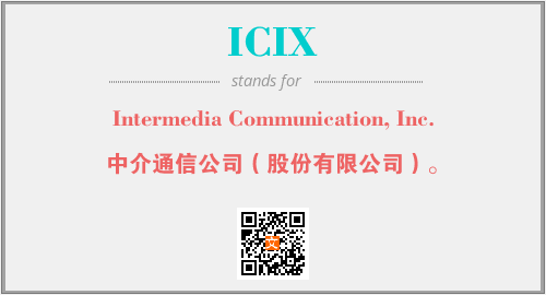 上述内容是“Intermedia Communication, Inc.”作为“ICIX”的缩写,解释为“中介通信公司(股份有限公司)。”时的信息,以及英文缩略词ICIX所代表的英文单词,其对应的中文拼音、详细解释以及在英文中的流行度和相关分类、应用领域及应用示例等。