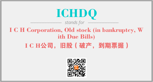 上述内容是“I C H Corporation, Old stock (in bankruptcy, With Due Bills)”作为“ICHDQ”的缩写,解释为“I C H公司,旧股(破产,到期票据)”时的信息,以及英文缩略词ICHDQ所代表的英文单词,其对应的中文拼音、详细解释以及在英文中的流行度和相关分类、应用领域及应用示例等。