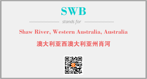 上述内容是“Shaw River, Western Australia, Australia”作为“SWB”的缩写,解释为“澳大利亚西澳大利亚州肖河”时的信息,以及英文缩略词SWB所代表的英文单词,其对应的中文拼音、详细解释以及在英文中的流行度和相关分类、应用领域及应用示例等。