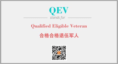 英文缩略词“QEV”经常作为“Qualified Eligible Veteran”的英文缩写来使用,中文表示:“合格合格退伍军人”。本文将详细介绍英文缩写词QEV所代表英文单词,其对应的中文拼音、详细解释以及在英语中的流行度。此外,还有关于缩略词QEV的分类、应用领域及相关应用示例等。